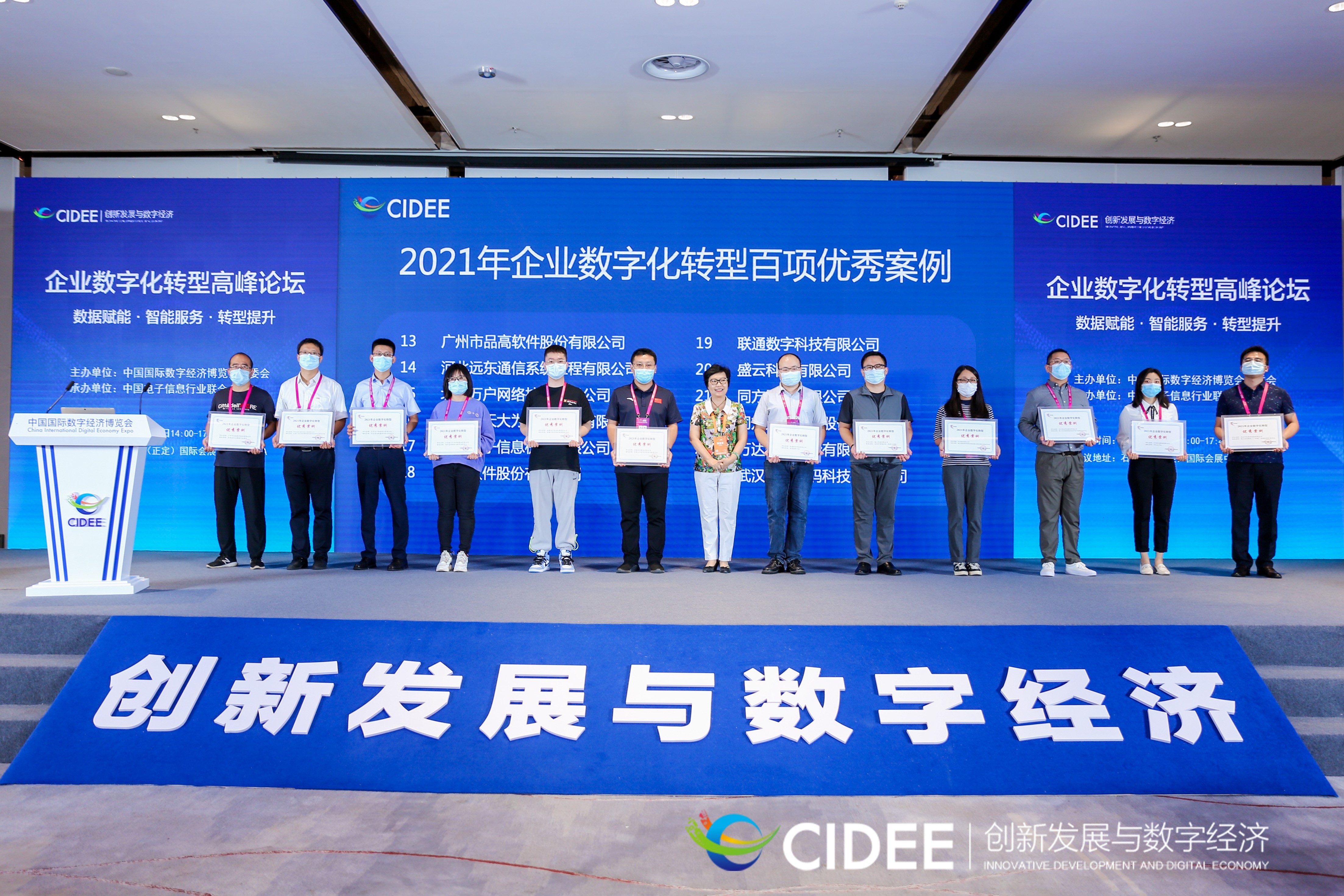 2021年企業(yè)數(shù)字化轉(zhuǎn)型百項優(yōu)秀案例證書頒發(fā)儀式(右三為同方鼎欣)