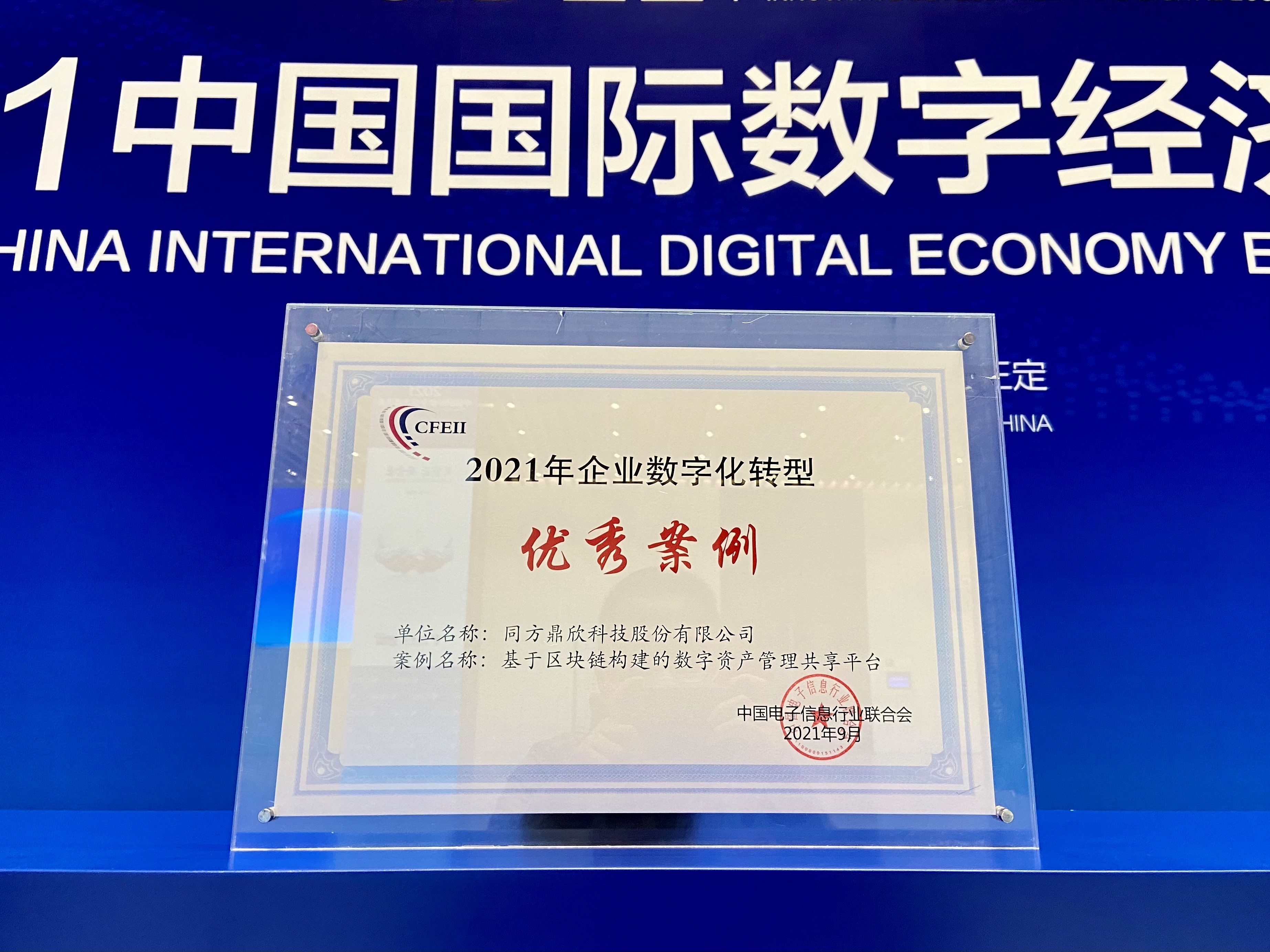 在本屆高峰論壇上,中國電子信息行業(yè)聯(lián)合會發(fā)布了“企業(yè)數(shù)字化轉(zhuǎn)型百項優(yōu)秀案例推廣目錄”。同方鼎欣選報的“基于區(qū)塊鏈構(gòu)建的數(shù)字資產(chǎn)管理共享平臺”從眾多企業(yè)案例中脫穎而出,獲評入選了首批“企業(yè)數(shù)字化轉(zhuǎn)型優(yōu)秀案例解決方案及應用案例”。