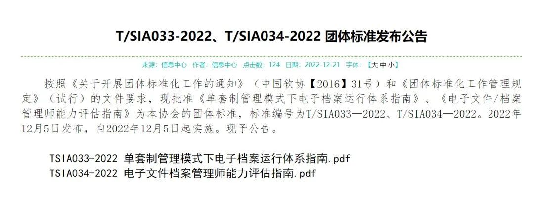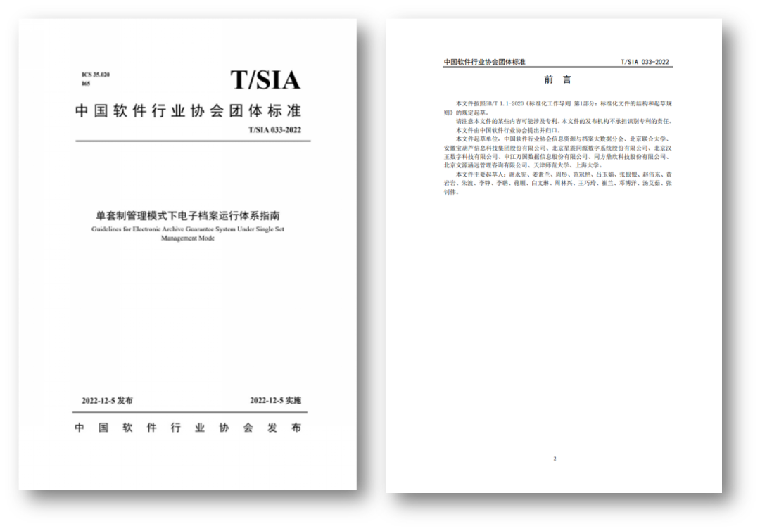 近日,由中國軟件行業(yè)協(xié)會主辦的“2022中國程序員節(jié)”在南京召開,在會上成果發(fā)布階段,中國軟件行業(yè)協(xié)會正式發(fā)布了《單套制管理模式下電子檔案運行體系指南》(T/SIA 033-2022)團體標準,該標準是由同方鼎欣作為主要編制單位參與制定而成。