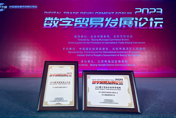 2023年9月6日,在中國(guó)國(guó)際服務(wù)貿(mào)易交易會(huì)上,由中國(guó)國(guó)際投資促進(jìn)會(huì)、北京市海淀區(qū)人民政府主辦,北京市海淀區(qū)商務(wù)局承辦的2023數(shù)字貿(mào)易發(fā)展論壇在北京國(guó)家會(huì)議中心成功舉辦。同方鼎欣作為我國(guó)數(shù)字貿(mào)易領(lǐng)域知名企業(yè)受邀出席本屆大會(huì),并再度獲評(píng)入選“2023服務(wù)貿(mào)易重點(diǎn)企業(yè)”和“2023數(shù)字貿(mào)易典型案例”推介名單。