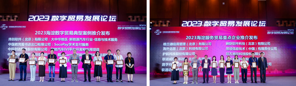作為中國(guó)國(guó)際服務(wù)貿(mào)易交易會(huì)的重要分論壇之一,數(shù)字貿(mào)易發(fā)展論壇自2013年首次舉辦以來,一直秉持國(guó)際化、專業(yè)化和平臺(tái)化的辦會(huì)宗旨,著重于打通上下游產(chǎn)業(yè)資源對(duì)接,推進(jìn)產(chǎn)業(yè)鏈協(xié)同發(fā)展,在跨國(guó)界、跨行業(yè)項(xiàng)目對(duì)接方面的平臺(tái)效果明顯。為進(jìn)一步鼓勵(lì)和支持海淀服務(wù)貿(mào)易企業(yè)參與國(guó)際競(jìng)爭(zhēng),擴(kuò)大出口,促進(jìn)“一帶一路”國(guó)家的合作,在本屆“2023數(shù)字貿(mào)易發(fā)展論壇”上發(fā)布了“2023服務(wù)貿(mào)易重點(diǎn)企業(yè)”和“2023數(shù)字貿(mào)易典型案例”推介名單。