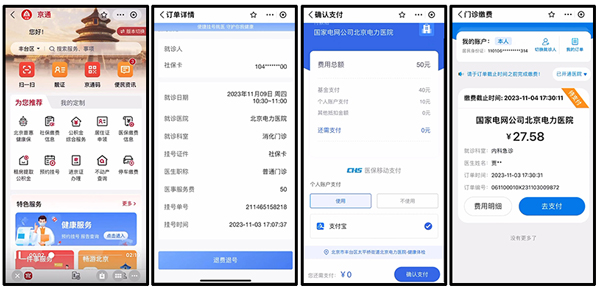 ▲北京電力醫(yī)院醫(yī)保移動支付開通測試