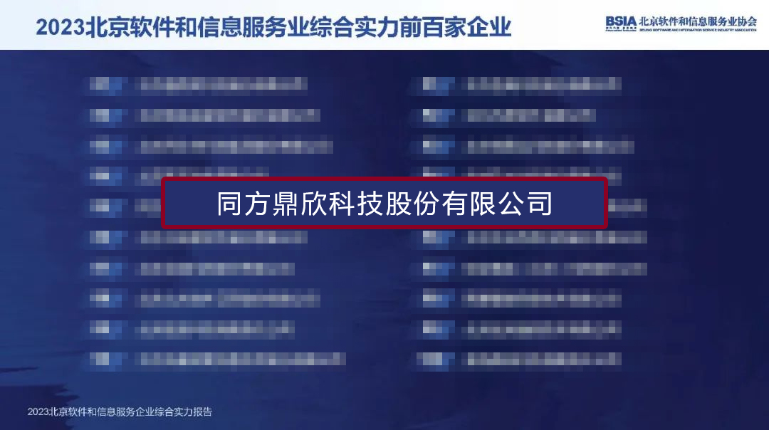 作為國內(nèi)最早成立的軟件行業(yè)協(xié)會之一,北京軟件和信息服務(wù)業(yè)協(xié)會(以下簡稱“北京軟協(xié)”)始終堅持創(chuàng)新發(fā)展、聚合突破、服務(wù)共享,著力從企業(yè)幫手、產(chǎn)業(yè)推手、政府助手三個方面,推動北京軟件產(chǎn)業(yè)高質(zhì)量發(fā)展。本次“北京軟件和信息服務(wù)企業(yè)綜合實力”評價工作參照了中國電子信息行業(yè)聯(lián)合會的軟件和信息技術(shù)服務(wù)競爭力企業(yè)評價,并以《軟件企業(yè)核心競爭力評價標(biāo)準(zhǔn)》(T/BSIA 002-2023)為基礎(chǔ),圍繞企業(yè)經(jīng)營現(xiàn)狀和發(fā)展?jié)摿煞矫嬲归_,量化衡量企業(yè)綜合實力。聚焦北京市行業(yè)內(nèi)業(yè)務(wù)規(guī)模大、效益好、自主創(chuàng)新能力強的優(yōu)秀企業(yè),從而評選出當(dāng)前北京市行業(yè)企業(yè)的最強陣容。同方鼎欣在七年間連續(xù)蟬聯(lián),且排名穩(wěn)步上升,充分證明了公司在技術(shù)研發(fā)實力、行業(yè)應(yīng)用創(chuàng)新等綜合實力方面的優(yōu)勢。