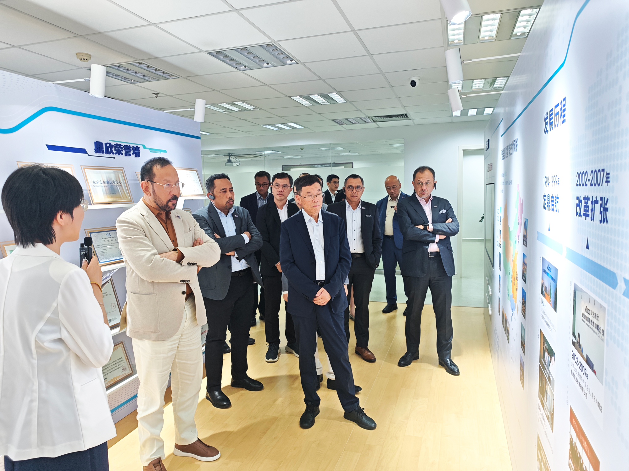 8月12日下午,在中關(guān)村國際的組織協(xié)同下,馬來西亞柔佛州重點(diǎn)國有企業(yè)柔佛集團(tuán)(Johor Corporation,簡稱JCORP)總裁兼柔佛置地集團(tuán)(JLG)董事會主席拿督賽易卜拉欣(Datuk Syed Mohamed Syed Ibrahim)攜核心高管團(tuán)隊(duì)一行蒞臨同方鼎欣科技股份有限公司北京總部;中關(guān)村國際總經(jīng)理盧江、副總經(jīng)理盧鵬等人全程陪同;鼎欣科技董事長郭明星、CEO涂勤華、總經(jīng)理江威等公司領(lǐng)導(dǎo)熱情接待了來賓。三方齊聚一堂,共話合作愿景。