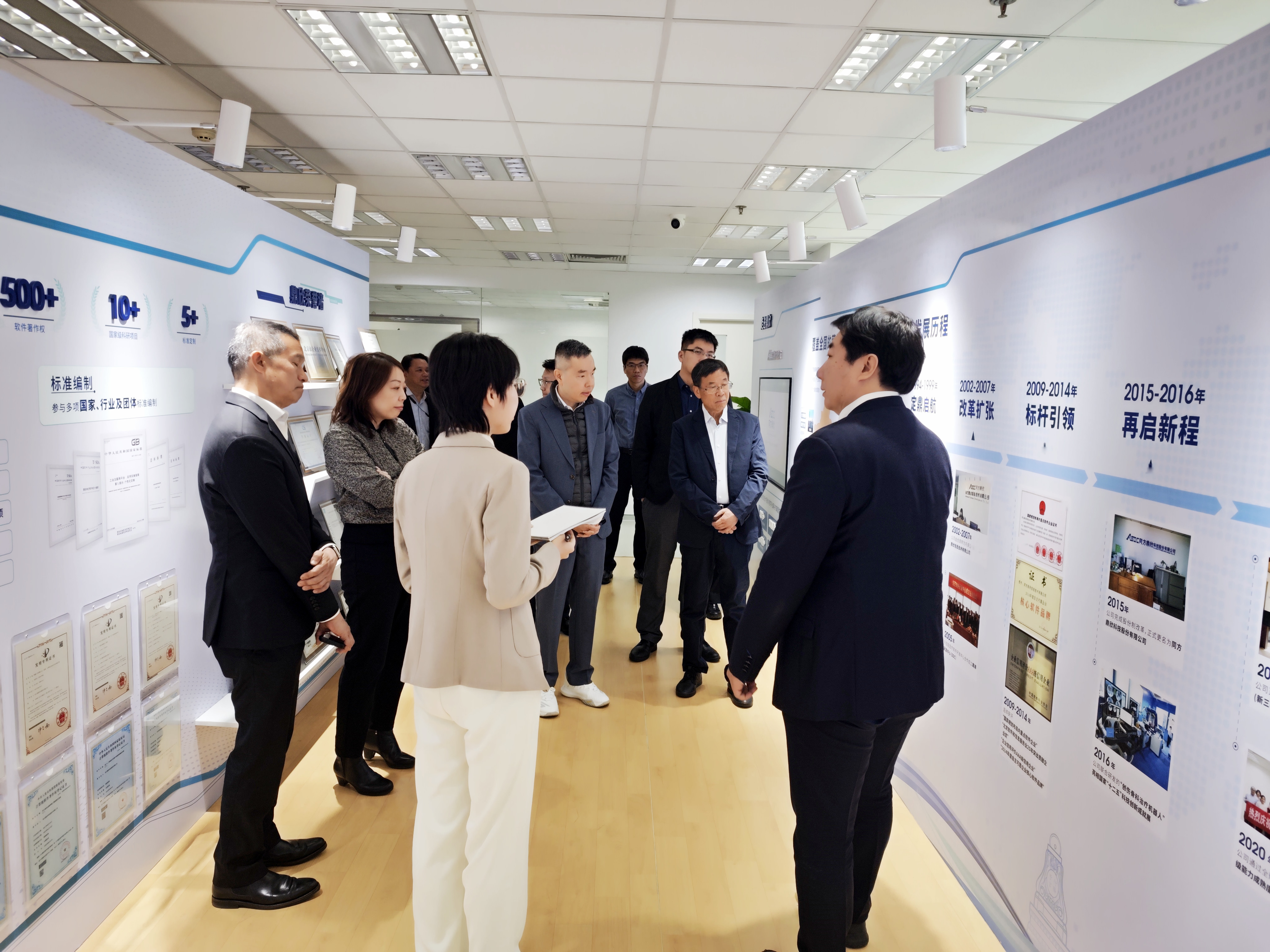 在展廳參觀環(huán)節(jié),鼎欣科技總經(jīng)理江威向新保集團(tuán)來賓詳細(xì)介紹了公司的醫(yī)療業(yè)務(wù)發(fā)展情況,著重介紹了人工智能、數(shù)據(jù)資產(chǎn)和運(yùn)維服務(wù)三大核心技術(shù)體系在醫(yī)療行業(yè)的深度覆蓋與多樣化應(yīng)用。并就公司核心醫(yī)療產(chǎn)品進(jìn)行了現(xiàn)場(chǎng)展示,包括醫(yī)學(xué)影像處理產(chǎn)品、全流程內(nèi)窺鏡網(wǎng)絡(luò)系統(tǒng)、細(xì)胞生化數(shù)據(jù)分析、??朴跋裉幚硐到y(tǒng)及骨科手術(shù)機(jī)器人等一系列產(chǎn)品與解決方案,讓來賓們對(duì)我司在數(shù)字醫(yī)療產(chǎn)品研發(fā)領(lǐng)域的實(shí)力有了更深入的認(rèn)識(shí),充分展現(xiàn)了我司在數(shù)字醫(yī)療領(lǐng)域全面的技術(shù)布局與創(chuàng)新能力。