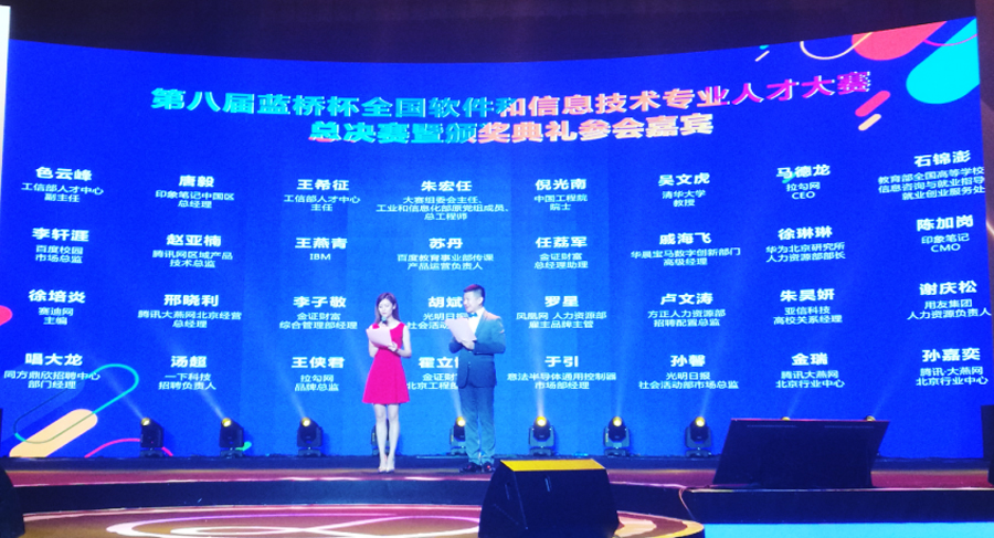 日前,第八屆藍橋杯全國軟件和信息技術(shù)專業(yè)人才大賽(以下簡稱“藍橋杯大賽”)全國總決賽暨頒獎典禮在北京大學(xué)邱德拔體育館圓滿落下帷幕。大賽組委會、工業(yè)和信息化部、中國企業(yè)聯(lián)合會、教育部等領(lǐng)導(dǎo)及知名企業(yè)與數(shù)家媒體代表出席了頒獎典禮。同方鼎欣科技股份有限公司招聘中心經(jīng)理唱大龍先生受邀代表公司成為本屆大賽的頒獎嘉賓。