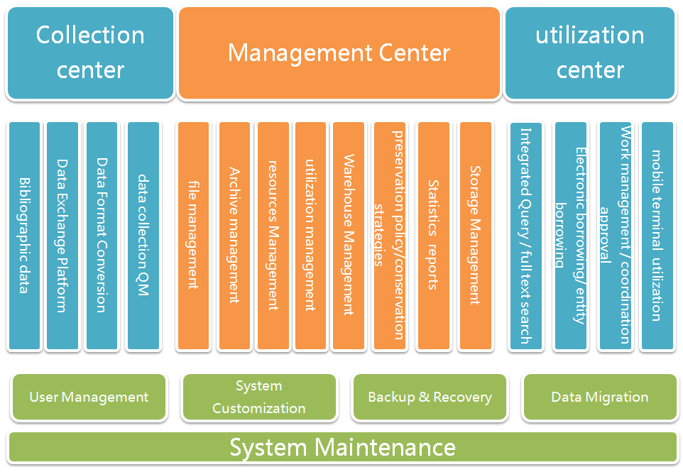 Specially providing convenient management for the funds constituting unit of the government institutes, supporting Integration with various e-government systems, realizing the perfect collection of data and front end controls, ensuring the reality, integrity of e-archives from beginning, intensively integrating with archives to realize perfect transformation and data reporting, and finally combining archives with library together.