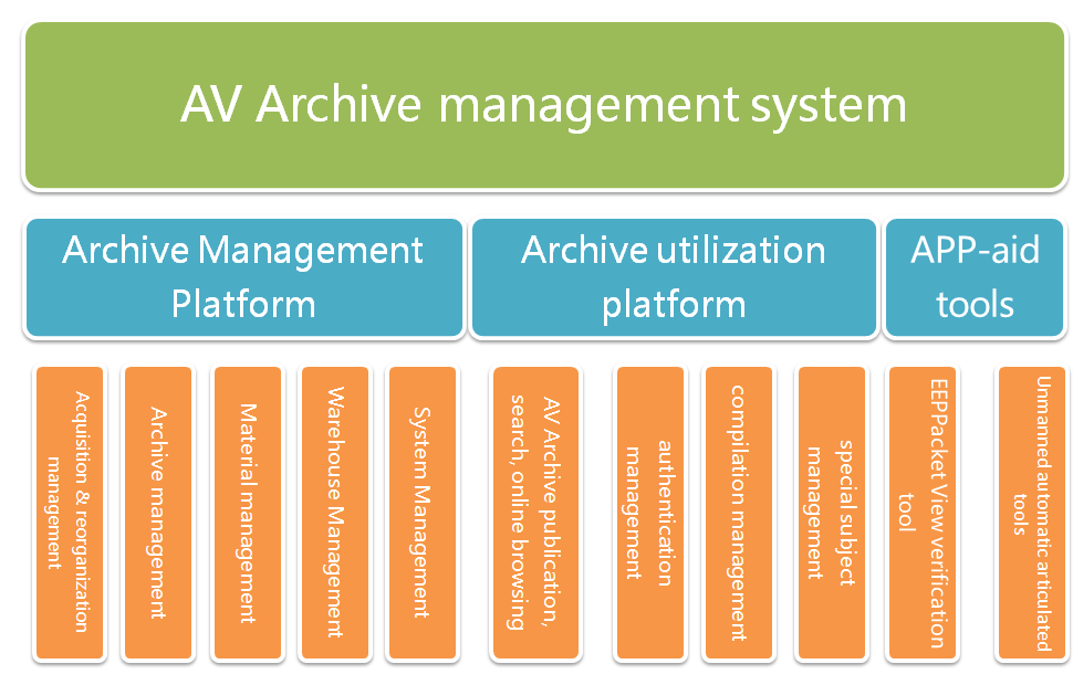 Apart from the basic management functions of archive, for audio, video and other multimedia professional archives management, the system implemented the video archives, editing material and uploading, share, and supported people to edit video for sharing, which supports metadata collection of multimedia documentation, implementing video split, merge, generating thumbnails, RBI key position description, streaming media format conversion, and online on-demand and so on.