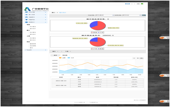 Advertising management platform is referred as based on Internet technology, to achieve the company's unified supervision and deployment for promotional activities. The platform is used and opened for the company's leadership at all levels who are responsible for advocacy work, media management, disseminating material management、project data management、dissemination of effectiveness evaluation and cooperative work functions and so on。