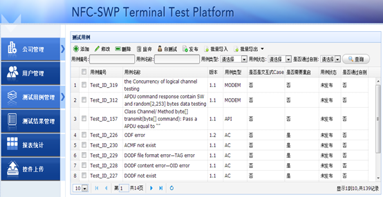 NFC-SWP---SIM card automated testing management system project provides automation test functions for mobile phone manufactures, supports the test environment configuration, test case automation test and real time query of test results. System source data comes from test cases and scripts imported.