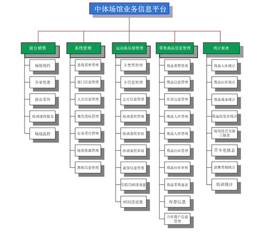 中體場館業(yè)務(wù)信息平臺項目是一個體育場館相關(guān)業(yè)務(wù)及資源管理的平臺,主要業(yè)務(wù)包括日常健身開單售票、場館預(yù)定、商品零售及培訓(xùn)課程報名以及會員卡管理等業(yè)務(wù)。